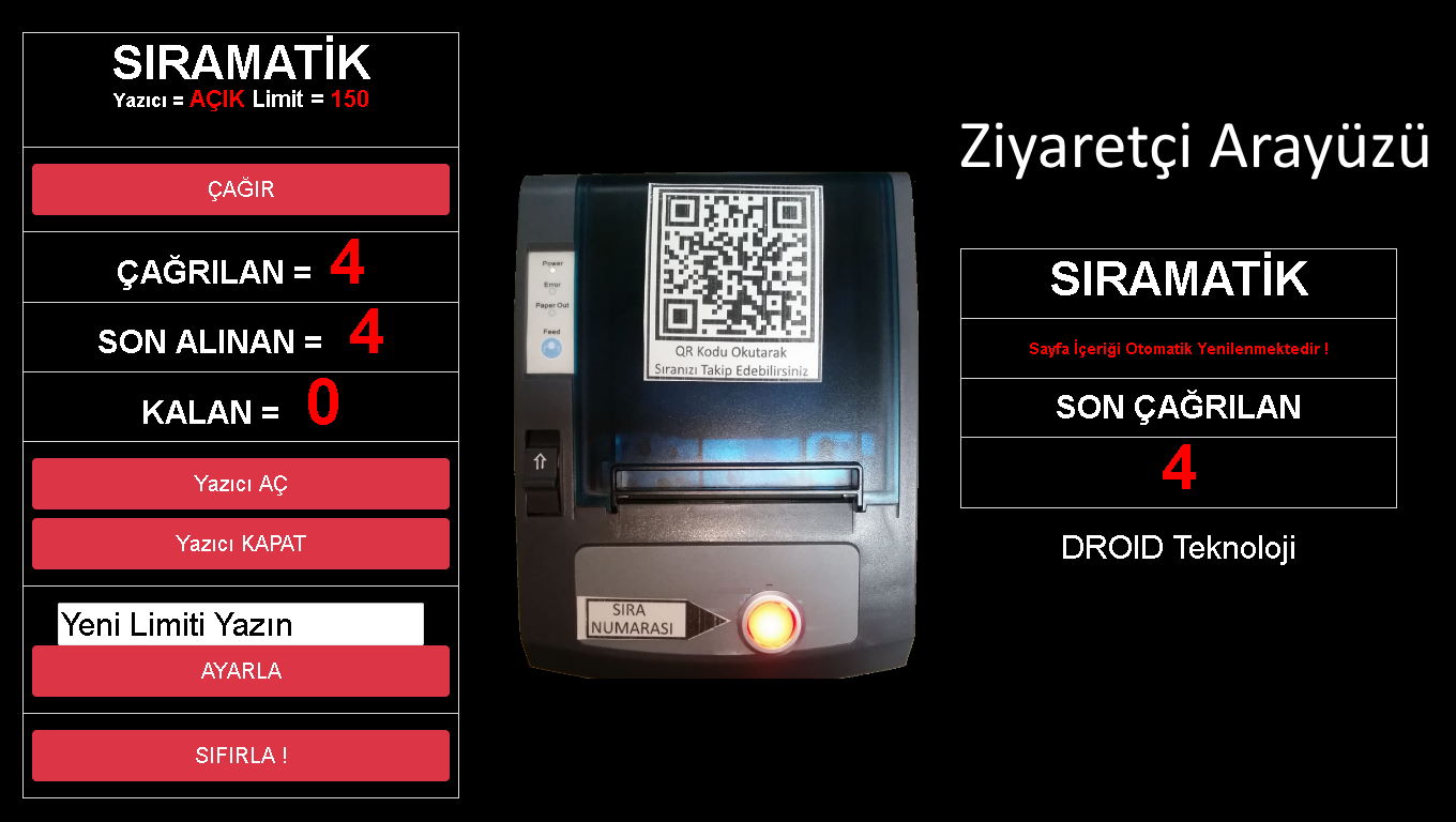 DROID Teknoloji WIFI sıramatik printer sayesinde sırada kaç kişi olduğunu bilgisayaraınız üzerinden görebilir ve bilgisayarınız üzerinden ziyaretçinizi çağırabilirsiniz